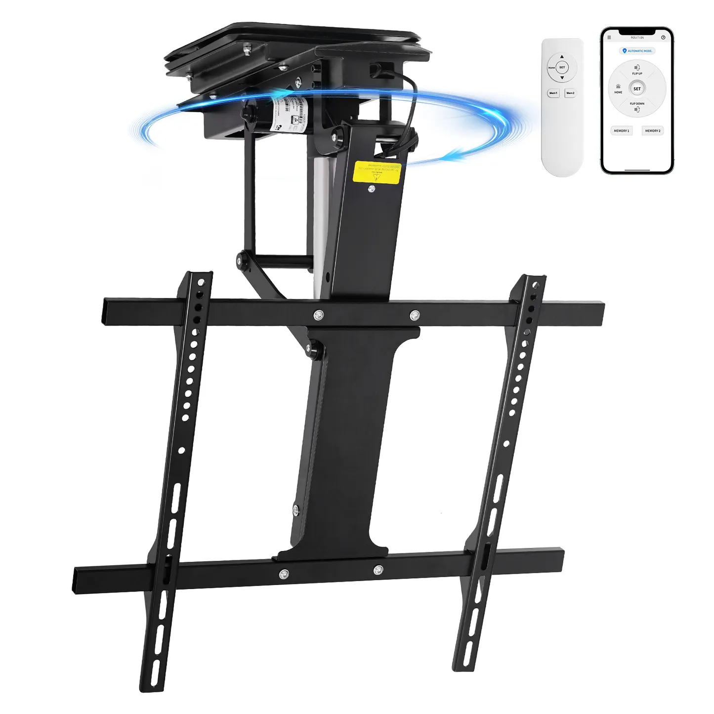 360° Manual Swivel TOPSKY Electric Adjustable Flip Down TV Mount with Remote & App Control, Large Motorized Ceiling Mount for 32–75 Inch Flat & Curved TVs, TV01.11