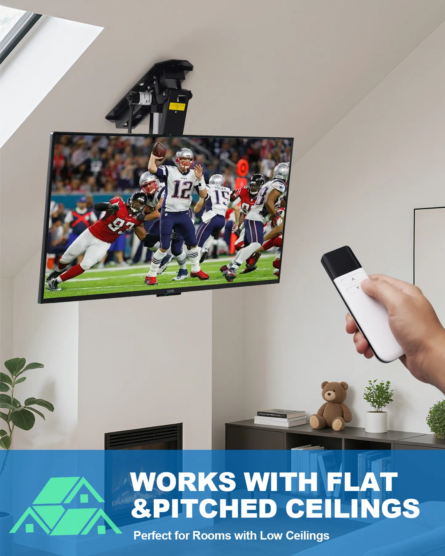 TOPSKY Electric Adjustable Ceiling TV Mount with Remote, Motorized Flip Down Pitched Roof TV Mount for 32 to 70 Inch Flat and Curved Screen TVs TV01.01